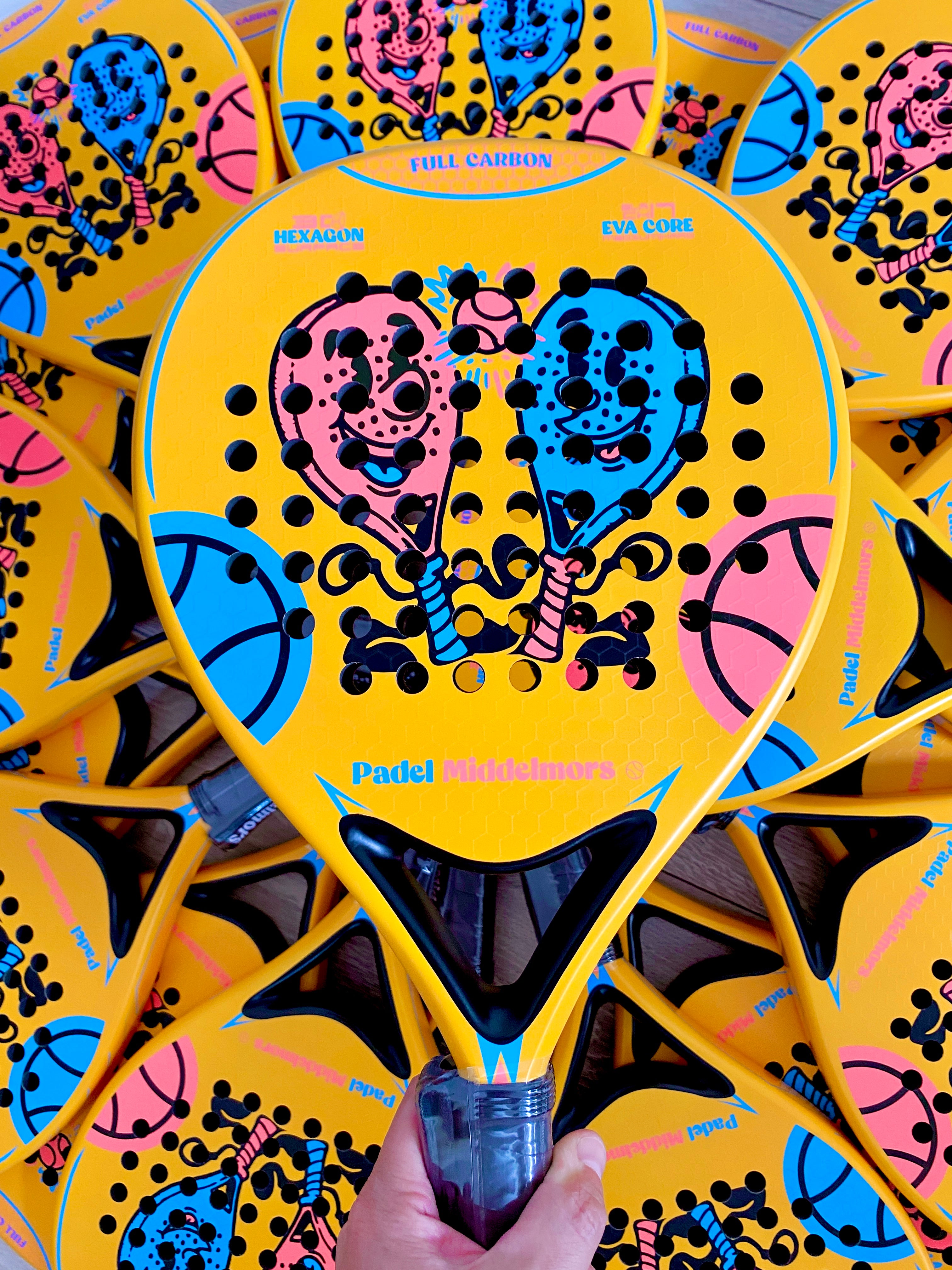 Voor alle grote Padelclubs hebben we al rackets gemaakt. Maar deze was heel bijzonder. Dit moet wel het meest kleurrijke en vrolijke racket ooit zijn.
